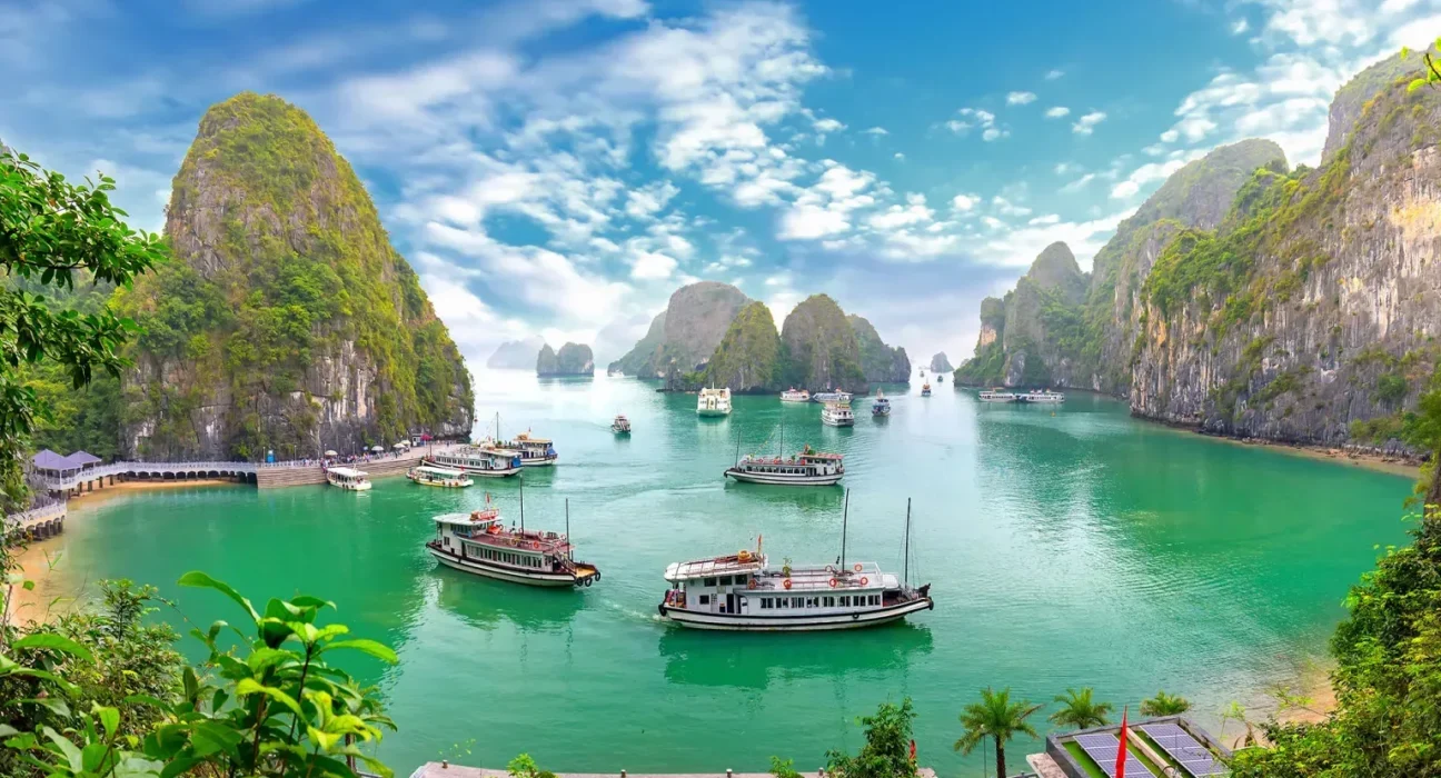Di bagian utara, Ha Long Bay adalah Situs Warisan Dunia UNESCO yang terkenal dengan ribuan pulau batu kapur yang menjulang dari laut. Mengikuti tur perahu di teluk ini memberikan pemandangan yang sangat memukau dan ketenangan batin yang mendalam.